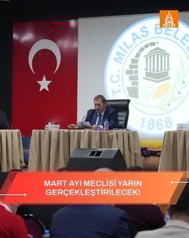 Milas Belediyesi 2026 yılı Mart Ayı Olağan Meclis Toplantısı Belediye Evlendirme Salonu’nda saat 14.00'te başlayacak. Meclis, Milas Belediyesi’nin facebook hesabından canlı olarak yayınlanacak. Meclis gündemi şu şekilde;